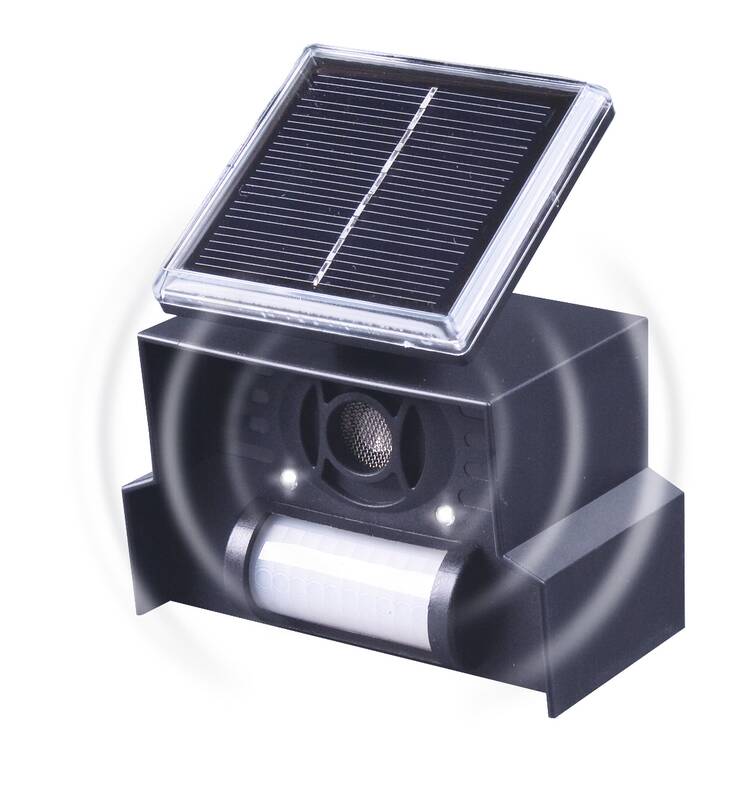 • Ein integrierter Bewegungsmelder registriert Tiere in einem Winkel von 110° und aktiviert einen wechselnden hochfrequenten Ton.