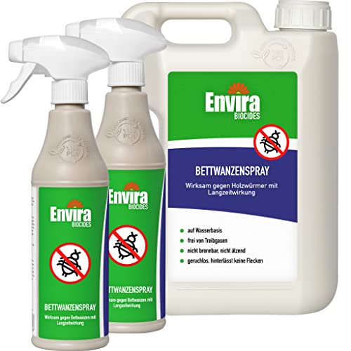 Envira Bettwanzen-Spray 2 x 500 ml + 2L - Bettwanzen-Bekämpfung für Matratzen & Textilien - Mittel gegen Bettwanzen & Larven - Bettwanzen bekämpfen - Geruchlos & auf Wasserbasis