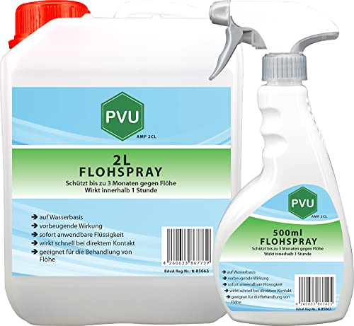 Pvu Floh Spray 2L + 500ml - Langzeitwirkung gegen Flöhe & Tierflöhe Innen und Außen auf Wasserbasis