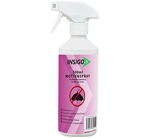 INSIGO Anti-Motten Spray 500ml | Hochwirksame Mottenbekämpfung auf Wasserbasis | Gegen MottenLarven & Eier | Fleckenfreie Motten-Abwehr