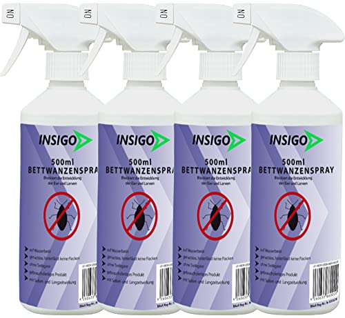INSIGO Bettwanzenspray 4x500ml | Hochwirksam gegen Bettwanzen | Mittel Gegen Wanzen deren Larven & Eier | Bettwanzen Bekämpfung