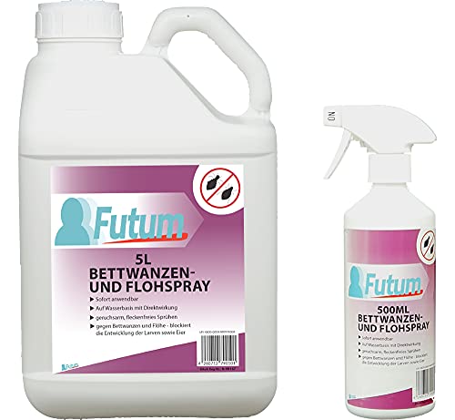 Futum 5L+500ml Bettwanzen- / Floh-Sprayhochwirksam gegen Flöhe, Wanzen, Larven & Eier, auf Wasserbasis, fleckenfrei, ohne Treibgase, mit Schnell- und Langzeitwirkung