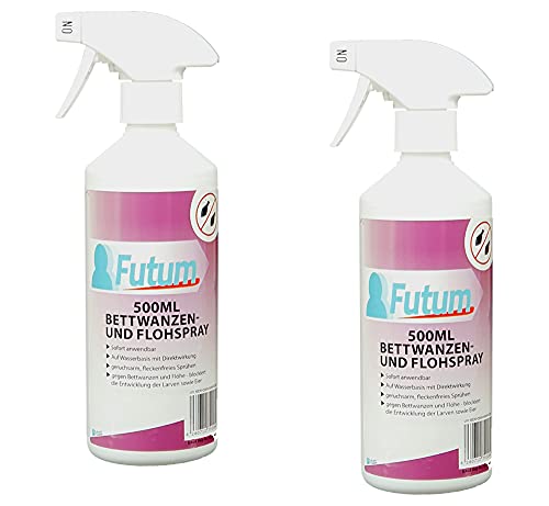 Futum2x500ml Bettwanzen - Floh SprayHochwirksam Larven & Eier bekämpfen, ohne Flecken & Treibgase, geruchsarm & Langzeitwirkung