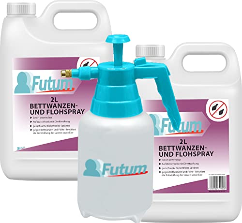 Futum Bettwanzen Spray Floh-Mittel 2x2L+2L Sprüher Bettwanzen Flöhe bekämpfen Innen & Außen Auf Wasserbasis mit Langzeitwirkung