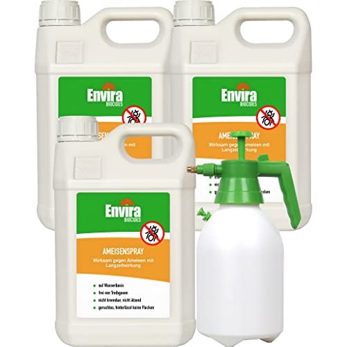 Envira Ameisen-Spray 3x 5 Liter + 2L Drucksprüher - Ameisen bekämpfen im Haus & im Garten - Ameisengift innen - mit Langzeitwirkung & geruchsneutral