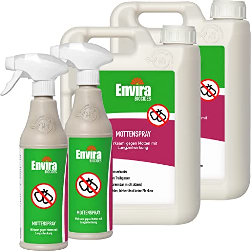 Envira Motten-Spray 2X 500 ml + 2X 2 Liter - Mittel gegen MottenKleidermotten, Lebensmittelmotten - Mottenschutz mit Langzeitwirkung - Mottenfalle Alternative, Geruchlos