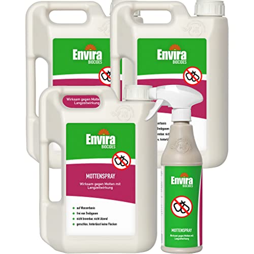 Envira Motten-Spray 500 ml + 3X 2 Liter - Mittel gegen MottenKleidermotten, Lebensmittelmotten - Mottenschutz mit Langzeitwirkung - Mottenfalle Alternative, Geruchlos