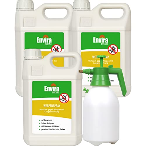 Envira Wespen-Spray gegen Wespen & Wespennester - Anti-Wespen-Spray zur Wespen-Abwehr mit Langzeitwirkung & auf Wasserbasis - 3 x 5 Liter + 2L Drucksprüher