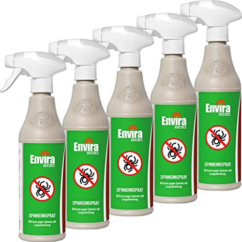 Envira Spinnen-Spray - Spinnenabwehr für Außen und Innen - 5 x 500 ml - Anti Spinnenspray mit Langzeitwirkung - Spinnen vertreiben im Haus & im Garten - Geruchlos & Auf Wasserbasis