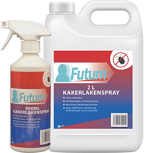 Futum Schaben Spray 2 Liter + 500ml Kakerlaken bekämpfen auf Wasserbasis Ohne Treibgase wirkt gegen Eier Innen & Außen