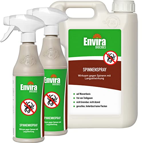 Envira Spinnen-Spray - Anti-Spinnen-Mittel Mit Langzeitwirkung - Geruchlos & Auf Wasserbasis - 2 x 500 ml + 2 Liter