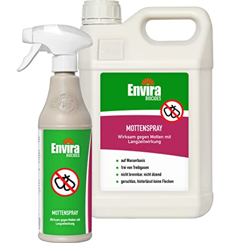 Envira Motten-Spray500 ml + 5 Liter- Mittel gegen Motten, Kleidermotten, Lebensmittelmotten mit Langzeitwirkung - Spray auf Wasserbasis, geruchlos