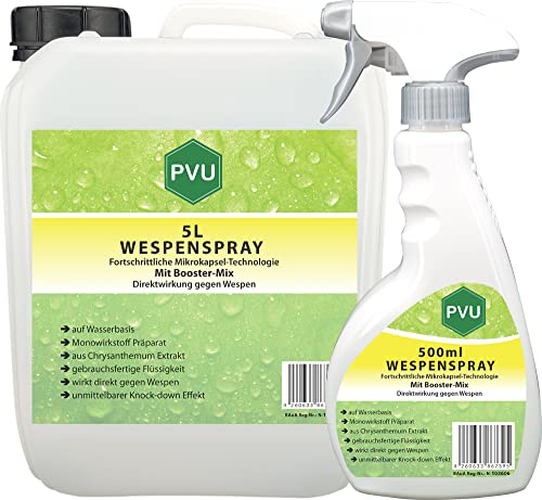 PVU Wespenspray 5 Liter + 500ml | Hochwirksames Wespengift aus reinem Chrysanthemum Extraktformuliert in Deutschland