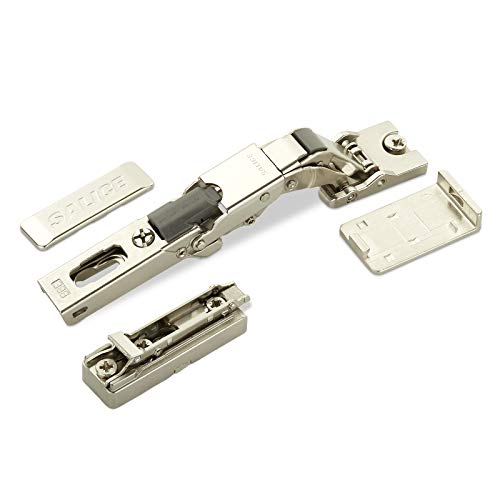 2 x Salice Universalscharnier Push Open für Glastür oder Spiegeltür 110° inkl. Linear-Montageplatte Höhe 6 mm mit EuroschraubenExzenterverstellung, Türscharniere mit Abdeckkappen