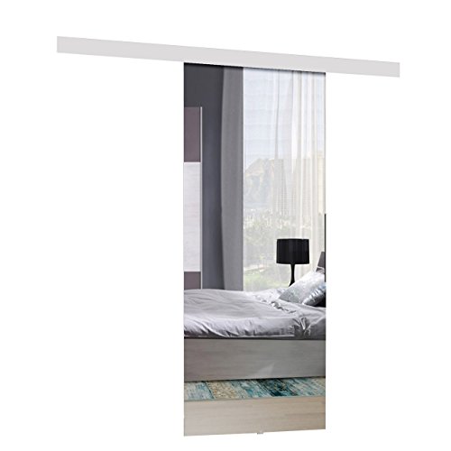 Mirjan24 Schiebetürsystem Mirror Komplett-Set für SchiebetürenAbstandsführung Trennwände Innentüren (Weiß + Spiegel, Modell 70.) - Solide Aluminiumgriffe, Metallkugellagerschiebesystem