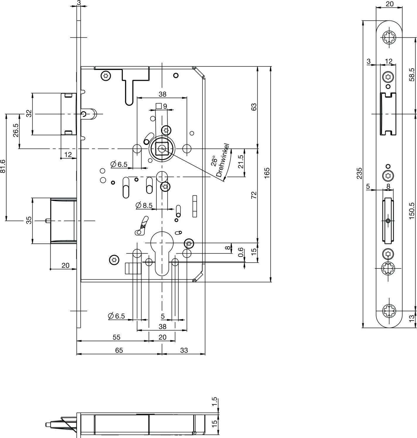 • Der Schließzylinder hat eine Stulpbreite von 20 mm und eine Stulplänge von 235 mm
