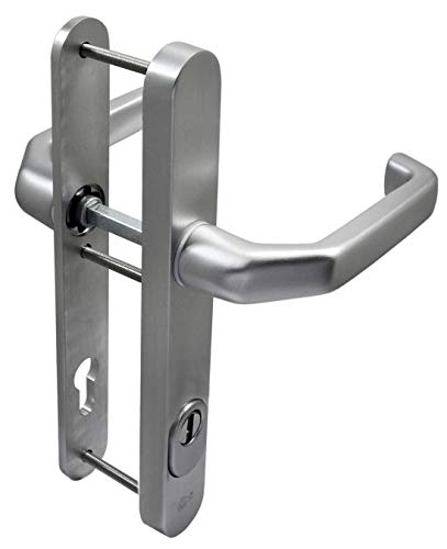 Häusler Onlinehandel GmbH Schmalrahmen Schutzbeschlag SRG 9949 Dr-Dr 92mm ES2 mit ZA Türdrücker TürklinkeSilber Alu F1, SKG3/ES2, festdrehbare Lagerung, inkl. Aufschiebhülsen