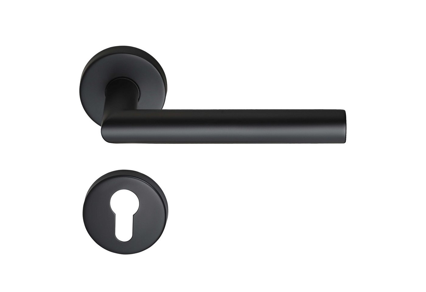 MeinTürgriff Drückergarnitur Toulouse schwarzEdelstahl-Rosetten-Türgriff für Innentüren L-Form mit verdeckter Befestigung