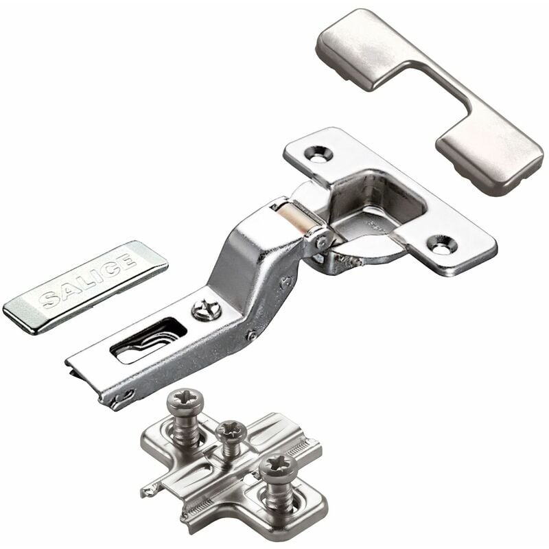 So-tech Salice Topfband 110° Serie 2002er Set mit Kreuz-Montageplatte, nickel matt, inkl. vormontierten Euroschrauben für Innenanschlag