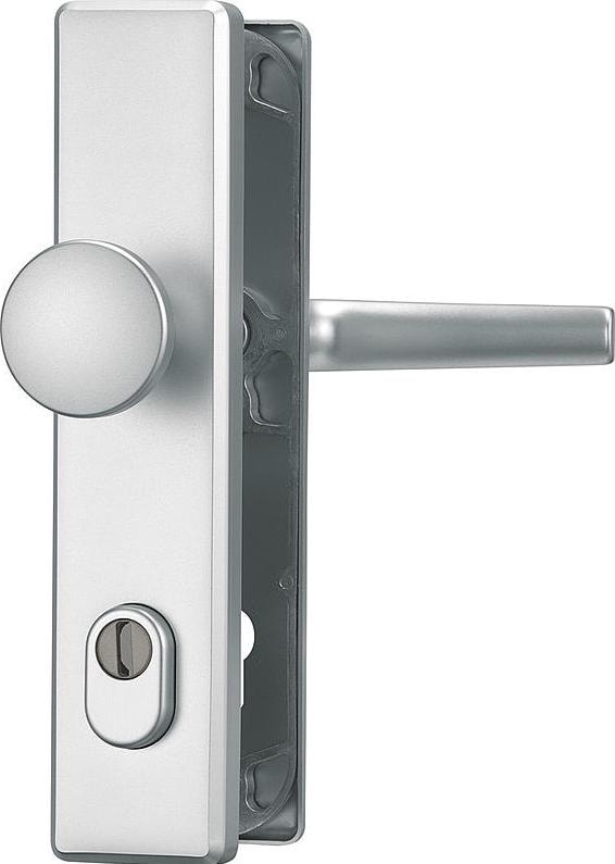 AbusTürgriff + Fenstergriff, Schutzbeschlag Drücker/Platte Haustr HLS214 F2 - neusilber, universell einsetzbar, mit integriertem Ziehschutz, DIN EN 1906 SK 1, DIN 18 257 ES 0 - 250 mm Schildlänge