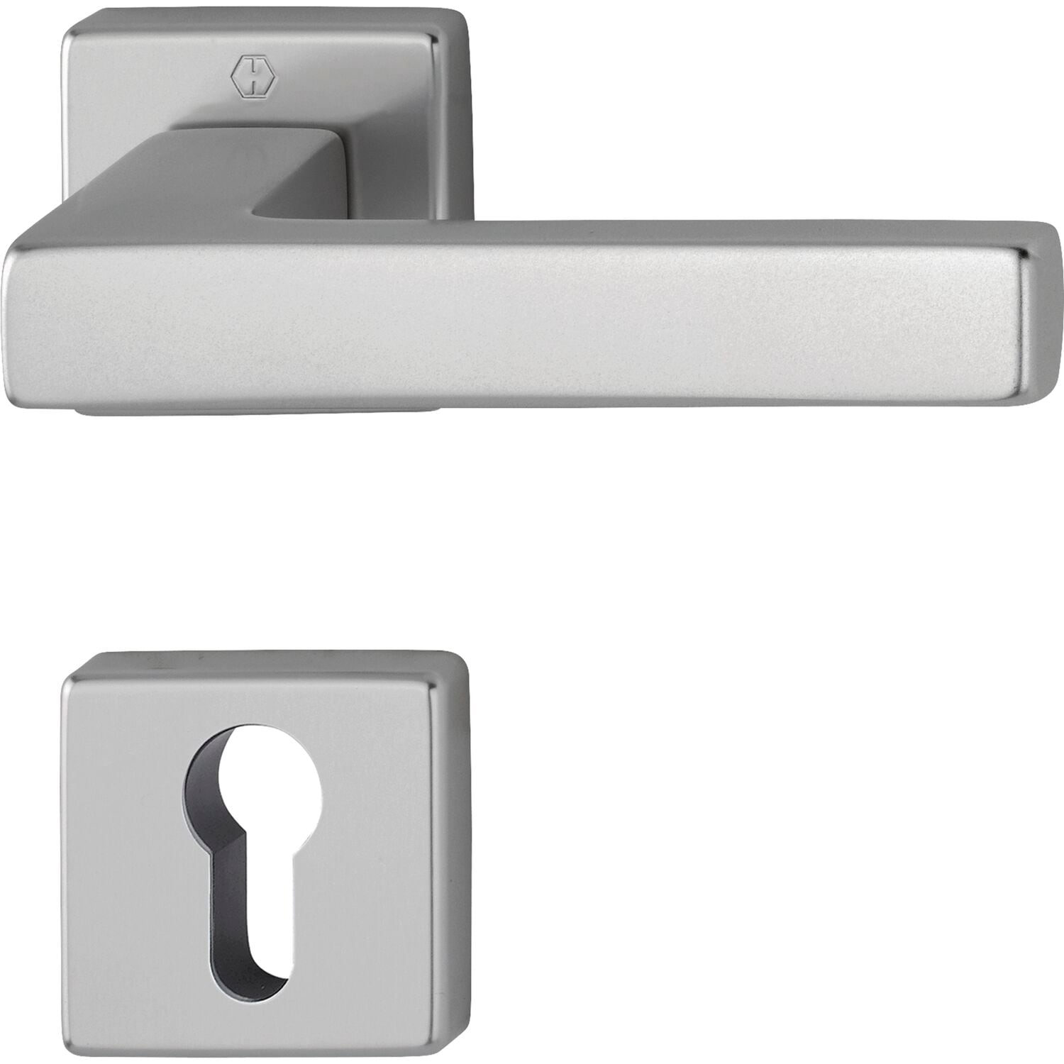 Hoppe Türgriff + FenstergriffDrückergarnitur AUSTIN - auf Rosette PZ, Aluminium Edelstahl Effekt (Türgriff) - mit Rückholfeder und wartungsfreiem Gleitlager
