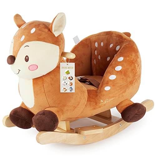 Dieses Schaukeltier bietet Kindern eine kuschelige und stabile Spielmöglichkeit, die sowohl zum Spielen als auch zum Entspannen einlädt. Die hochwertige Verarbeitung aus Buchenholz sorgt für Langlebigkeit, während das niedliche Design die Fantasie anregt und zur kreativen Rollenspielgestaltung beiträgt.