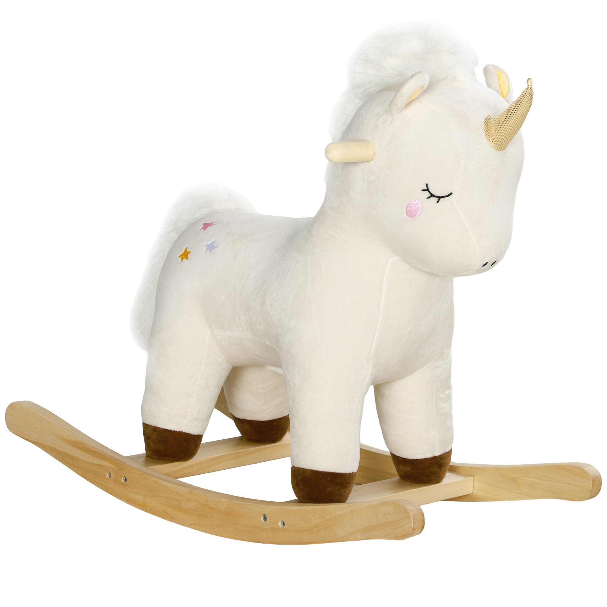 AIYAPLAY Schaukeltier mit Unicorn DesignSound, Schaukelpferd, Schaukelspielzeug, Plüsch, Weiß, für Kleinkinder ab 2 Jahre