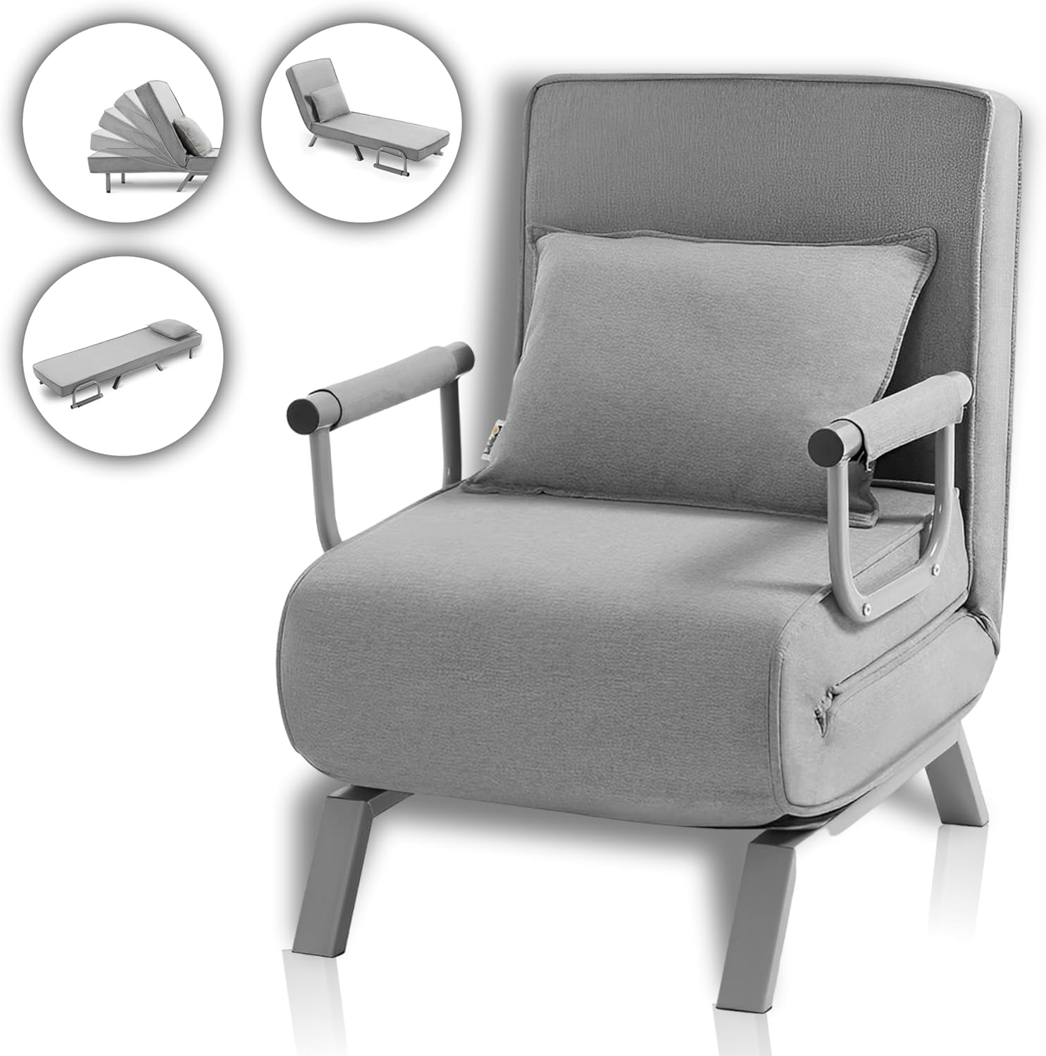 - 3IN1 SCHLAFSESSEL: Der 3in1 Sessel lässt sich ohne Aufwand und Kraftanstrengung verwandeln. Die Kopfstütze der Liege ist zusätzlich in 5 Positionen verstellbar und wird in der untersten Position zu einem vollfunktionalen Bett - AUSKLAPPBARE STÜTZEN: Werden die Stützen nicht gebraucht, machen sie sich in den Reißverschlusstaschen auf der Rückseite unsichtbar - MODERNES DESIGN: Das stillvolle Möbelstück findet also sowohl im Wohn- als auch im Schlafzimmer seinen geeigneten Platz. Durch das moderne und minimalistische Design, lässt sich der Schlafsessel schnell an einen anderen Ort umsetzen - KOPFKISSEN: Das formschöne und farblich passende Kissen trägt zu einem erholsamen Schlaf bei und entlastet den Rücken - PFLEGELEICHTE REINIGUNG: Sowohl der Kissen- als auch der Sofabezug lassen sich dank der Reisverschlüsse kinderleicht entfernen und sind dadurch besonders einfach zu reinigen (Handwäsche empfohlen)