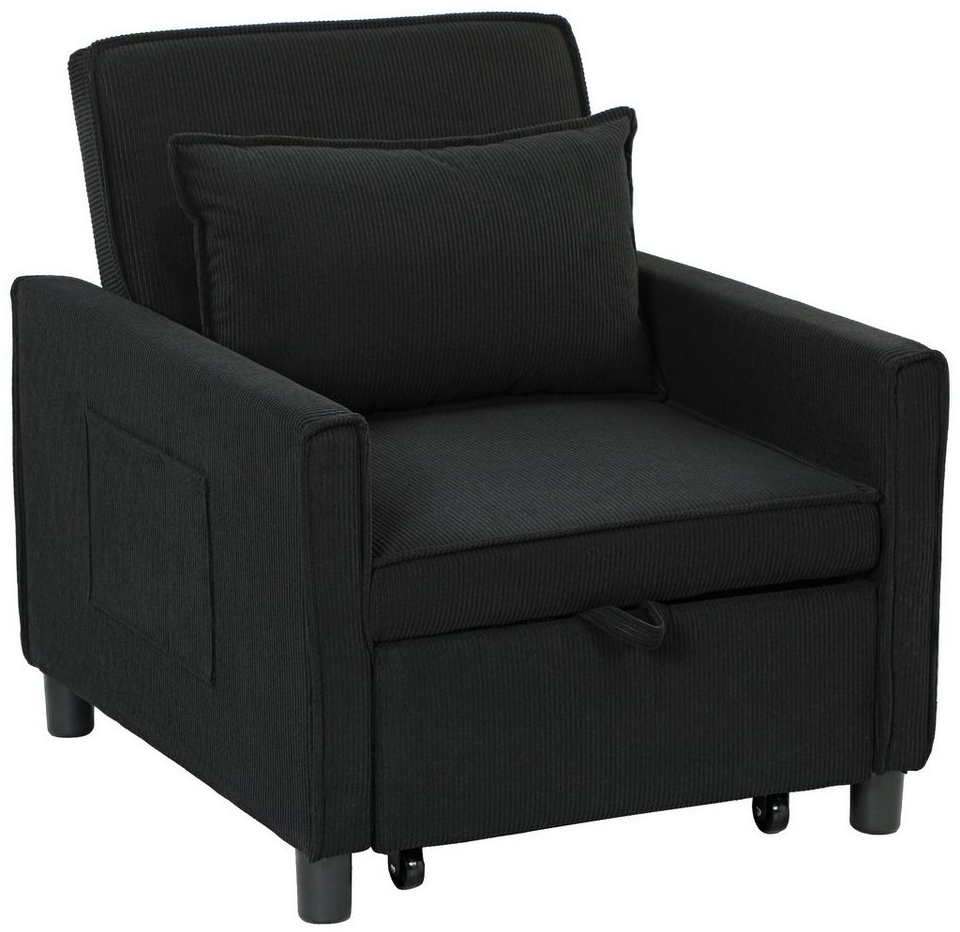 | Name | HOMCOM 3-in-1 Schlafsessel, Klappbett mit Bettfunktion, Lendenkissen, Klappbar Liegestuhl mit Verstellbarer Rückenlehne, Rollen, Seitentasche, für Wohnzimmer, Kord, Schwarz |