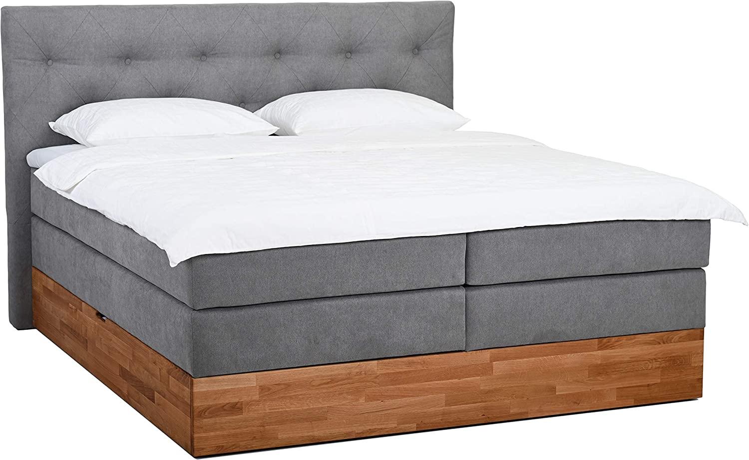 | Name | Belanoti MARBO Boxspringbett 180x200 mit Bettkasten 7-Zonen Taschenfederkern Matratze inklusive Visco Topper Bett 180x200 Eiche in der Farbe Hellgrau H2/H3 Polsterbett mit Massivholz Eiche |