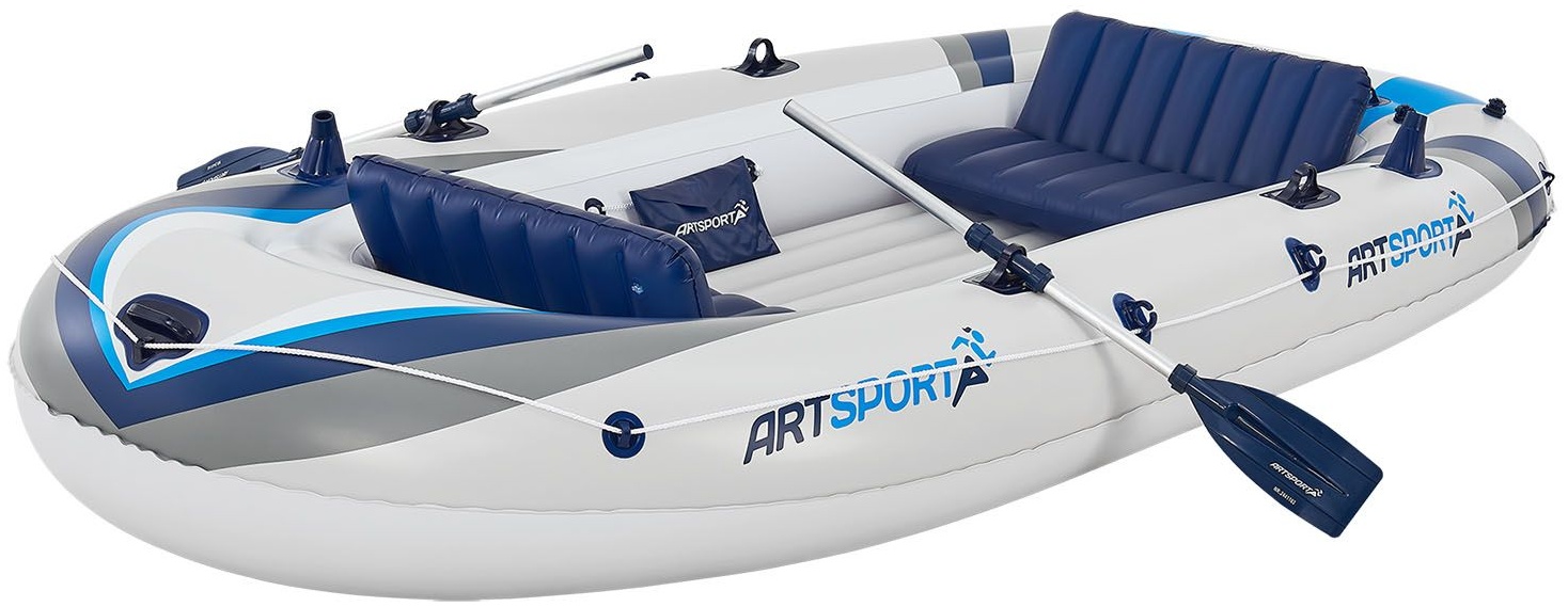 Das ArtSport Schlauchboot bietet Platz für 4 Personen und ist gut verarbeitet, jedoch sind die mitgelieferten Paddel zu kurz und von minderer Qualität.
