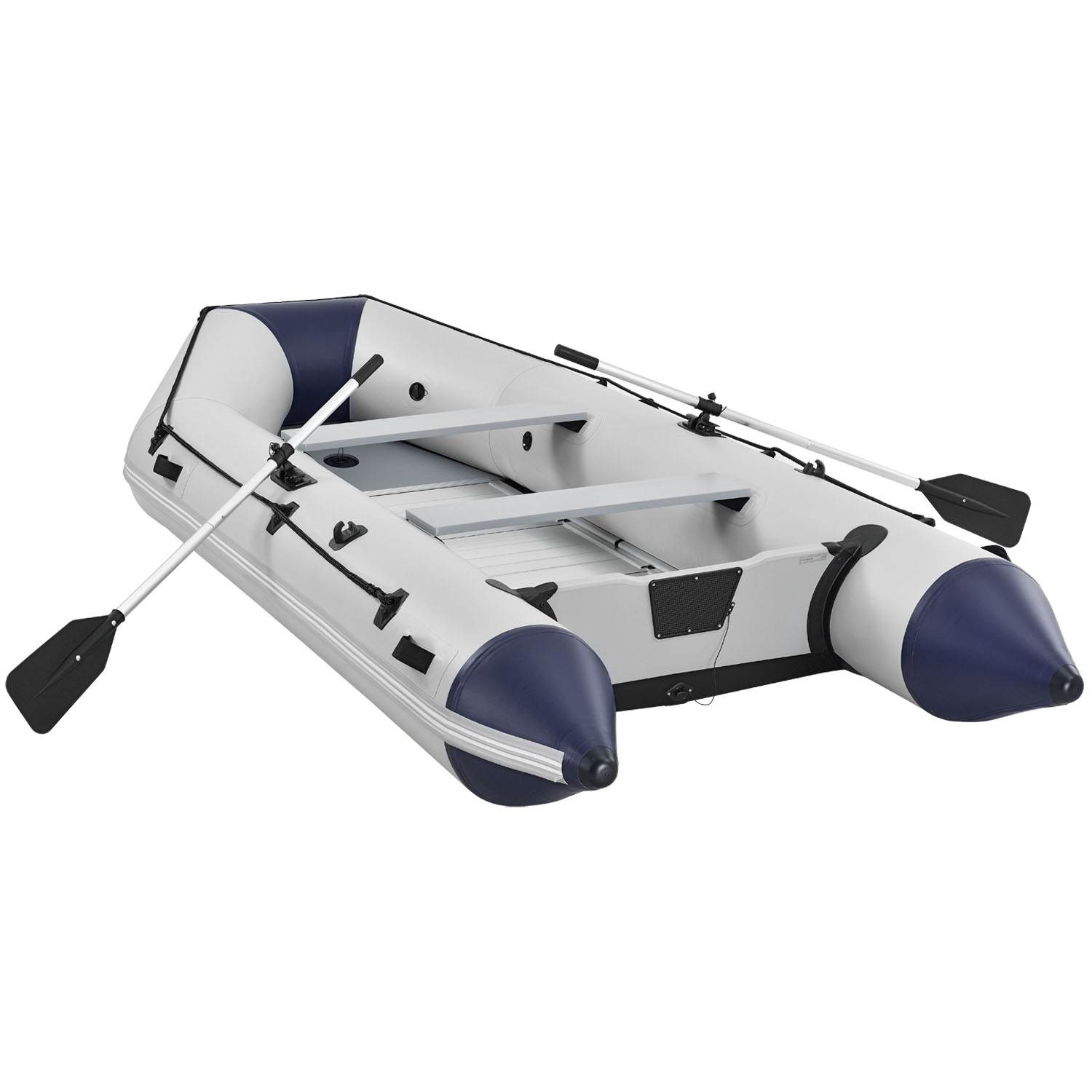 Aufblasbares Schlauchboot 3,80 m mit 2 Sitzbänken Ob ein entspannter Familientag, eine Tour mit Freunden oder ein Angelausflug - Unser Schlauchboot ist ein echter Allrounder. Das Ruderboot der Kategorie C ist sowohl in Süß-, als auch in Salzwasser zu Hause und trotzt Wellen von bis zu 2 Metern. Auch bei einer Windstärke bis einschließlich 6 km/h sind Sie mit unserem Paddelboot bestens gewappnet. Mit dem 3,80 Meter langem Boot sind Sie perfekt ausgestattet für heiße Sommertage. Zwei komfortable Sitzbänke und umfangreiches Zubehör komplettieren das Erlebnis. **Platz für bis zu 6 Personen** Durch die 2 bequemen Sitzbänke und dem geräumigen Fußraum haben bis zu 6 Personen im Schlauchboot bequem Platz. Dafür sorgen die großzügigen Bemessungen von 380 cm x 170 cm. Ein Spaß für die ganze Familie! **Hochwertige Verarbeitung** Aufgrund der hochwertigen Verarbeitung durch PVC und Aluminium ist das Boot besonders stabil und leicht zu pflegen. Weiterhin ist es Wetter- & UV-beständig. Einem sorgenfreien Ausflug nichts entgegen. **Leicht zu transportieren** Mit den Tragegriffen und der beigefügten Tragetasche ist es besonders einfach das Paddelboot zu transportieren. Durch die platzsparende Aufbewahrung lässt sich dieses Boot ideal Einlagern. Immer sofort einsetzbar und transportabel! Der spontane Bootsausflug ist gesichert. **Inklusive Reparaturset** Mitgeliefert wird ein praktisches Reparaturset, mit dem kleine Schäden, wie Risse und Löcher unkompliziert selbst behoben werden können. So haben Sie lange Freude an Ihrem Boot und sind auf Überraschungen vorbereitet. **Schnelle & leichte Inbetriebnahme** Das Ruderboot ist schnell und einfach zusammengebaut. Aufgrund der beigefügten Luftpumpe und den 3 Luftkammern ist das Schlauchboot leicht aufblasbar. Nach dem Einlegen der hochwertigen Bodenplatten und dem Anbringen der Sitzbänke und Paddel kann es direkt losgehen! **Vielseitig einsetzbar** Das Schlauchboot mit der Kategorie C ist optimal geeignet für küstennahe Gewässer, Buchten, Flüsse oder Seen. Dadurch ist es vielseitig einsetzbar. Unternehmen Sie Ausflüge sowohl in Salz-, als auch in Süßwasser. Auch als Angelboot haben Sie hier Ihren perfekten Begleiter. **Außenbordmotor geeignet** Für mehr Beschleunigung rüsten Sie das Schlauchboot mit einem Außenbordmotor nach. Mit einer maximalen Leistung von 30 PS, lehnen Sie sich entspannt zurück und genießen den Wind.