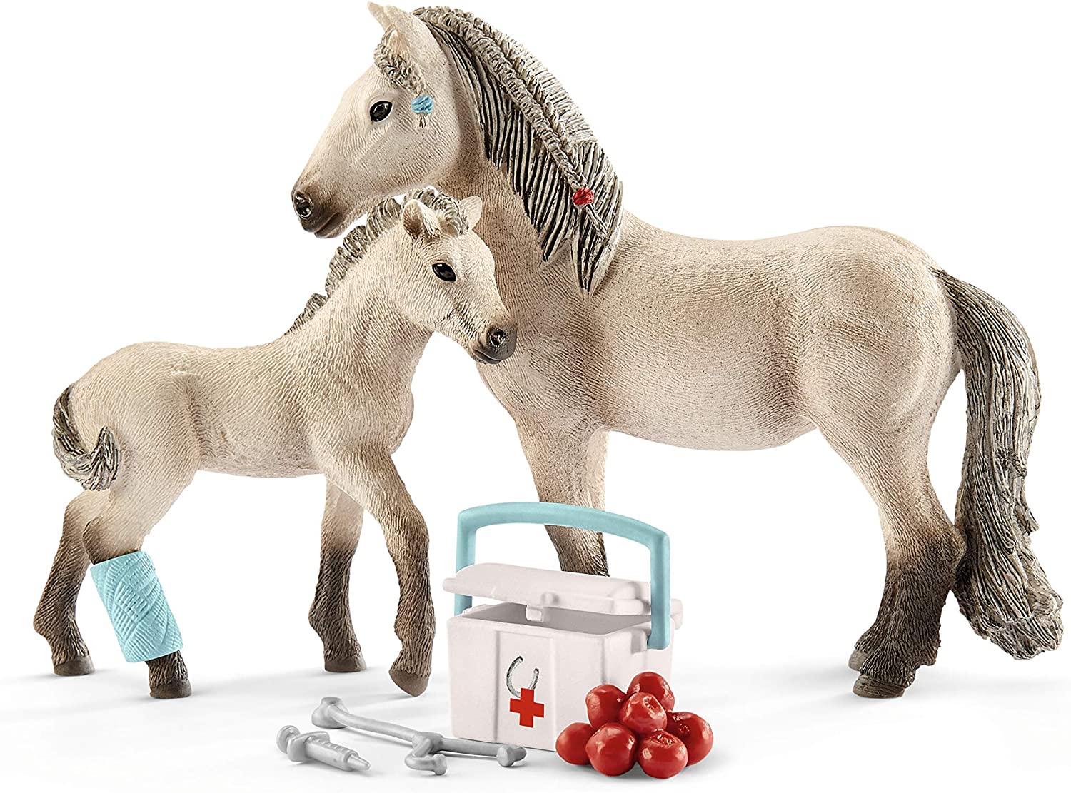 • Das Set umfasst eine detailgetreu modellierte Stute mit Fohlen.