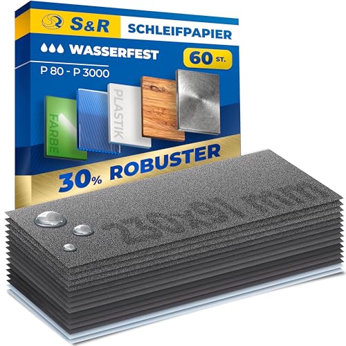 Das S&R wasserfeste Schleifpapier Set bietet eine Vielzahl von Körnungen und gute Qualität, die sich für verschiedene Anwendungen eignet. Die Standzeit des Schleifmaterials ist hoch, allerdings nutzen sich die Blätter schnell ab und können reißen. Einige Nutzer berichten von Verzerrungen des Schleifklotzes und überflüssigen hohen Körnungen.