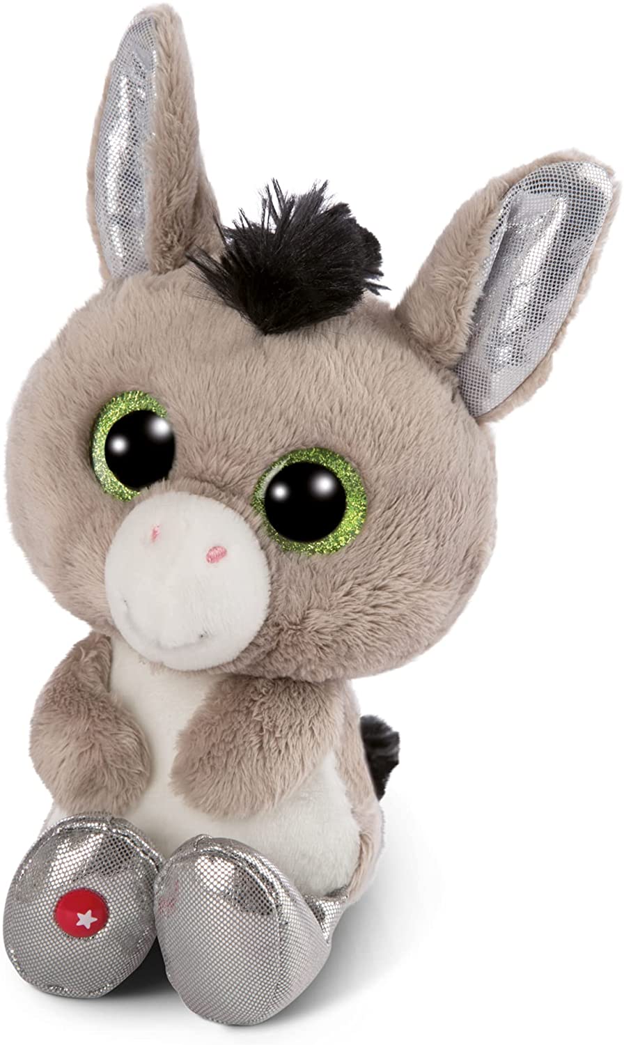 Mit 25 cm Größe und glitzernden Ohren ist er ein idealer Kuschelfreund für Kinder jeden Alters.