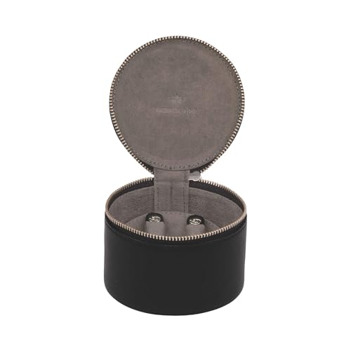 Windrose Schmucketui Rund Nappa abschließbare Schmuckaufbewahrung aus schwarzem Vollrindnappa-Leder, handgefertigt