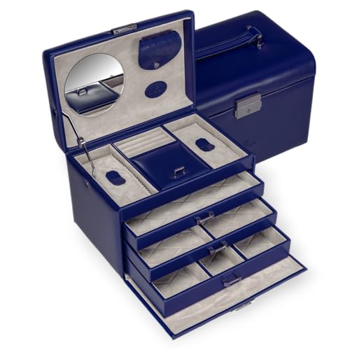 Windrose Schmuckkoffer Merino Moda luxuriöser Schmuckaufbewahrungskoffer aus Lederoptik, dunkelblau
