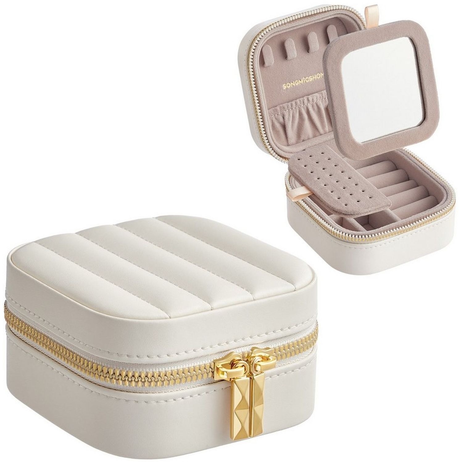 | Name | SONGMICS HOME ANAH Kollektion - Schmuckkästchen Reise, Schmuckkasten klein Schmuckaufbewahrung mit Spiegel, PU mit Nähten, Reißverschluss, Geschenkidee, wolkenweiß |
