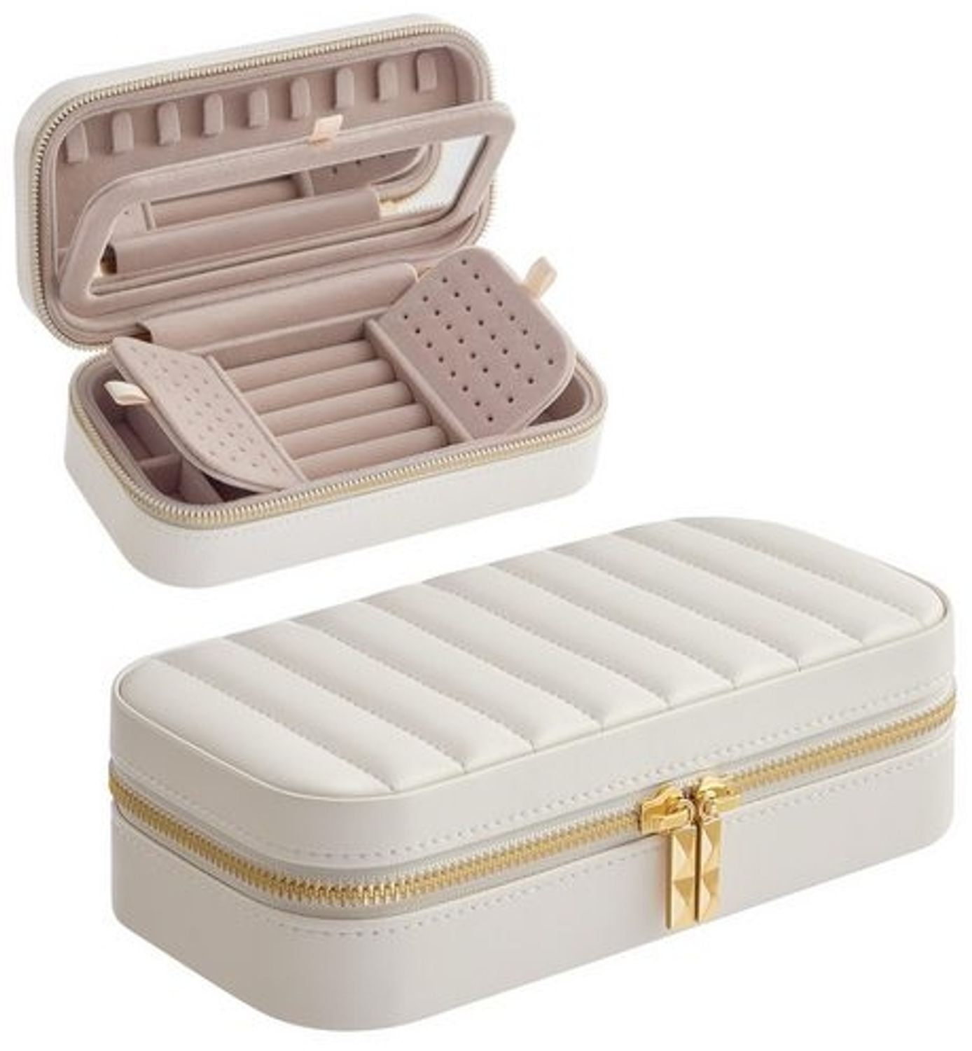 | Name | SONGMICS HOME ANAH Kollektion - Schmuckkästchen Reise, Schmuckkasten klein Schmuckaufbewahrung mit Spiegel, PU mit Nähten, Reißverschluss, Geschenkidee, wolkenweiß |