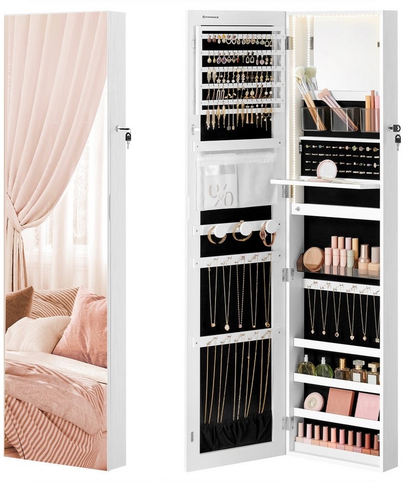 | Name | SONGMICS Schmuckschrank 140 cm hoch, Schmuckorganizer mit beleuchtetem Innenspiegel, Spiegelschrank wand- oder türmontiert, abschließbar, Geschenkidee, wolkenweiß JJCDE032W01 |