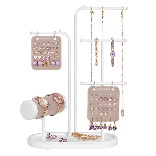 Der Schmuckständer bietet eine elegante und praktische Lösung zur Aufbewahrung und Präsentation von Schmuckstücken. Mit viel Platz für verschiedene Arten von Accessoires ermöglicht er es, diese ordentlich zu sortieren und griffbereit zu haben, wodurch die tägliche Auswahl erleichtert wird. Dank der robusten Konstruktion mit Anpassungsmöglichkeiten bleibt Ihr Schmuck sicher an Ort und Stelle.