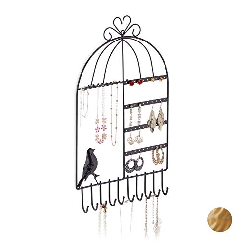 Relaxdays Schmuckhalter Vogelkäfig Schmuckaufbewahrung für Ketten, Ohrringe & Armbänder, schwarz, HBT 44,5x25,5x4,5 cm
