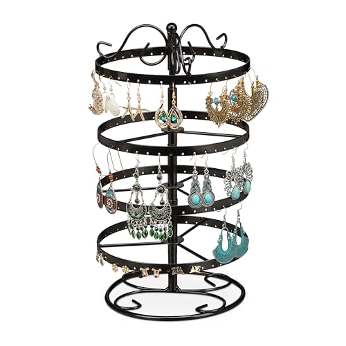 Relaxdays Ohrringhalter drehbar mit 168 Steckplätzen, aus Eisen, Schwarz, HxD: 30 x 16,5 cm, für Ohrstecker und lange Ohrringe