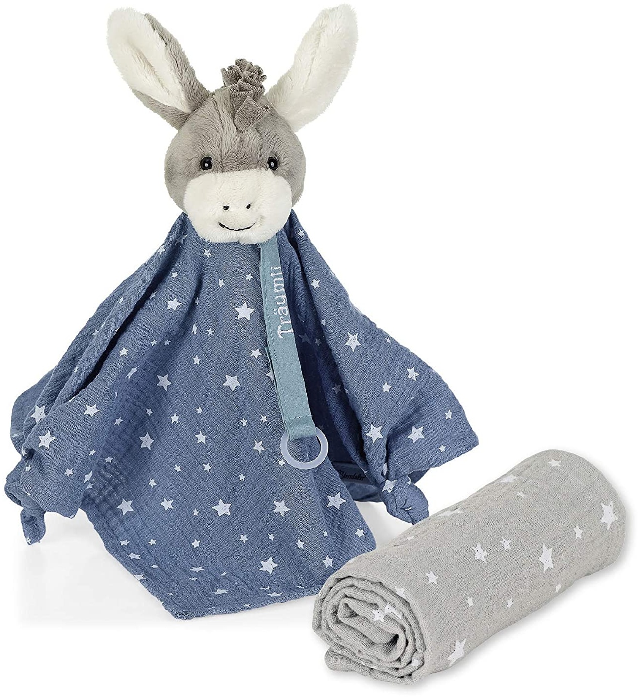 | Beschreibung | Kuscheltuch "Träumli" Set Esel Emmi aus Musselin, Flauschstoff und Polycotton mit Stickmotiv Träumli" und Schnullerband - passend für alle Schnuller, ob mit oder ohne Ring. Mit zusätzlichem kleinen Windeltuch. |