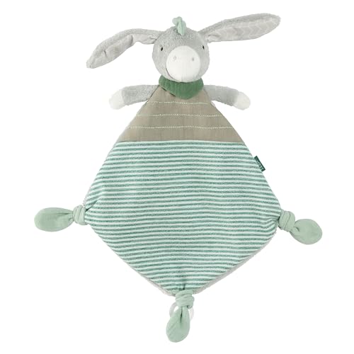 Fehn Schmusetuch Esel - Kuscheliges Schnuffeltuch mit Stofftier und Befestigungsring für Schnullerin schönen dezenten Farben, ab Geburt geeignet