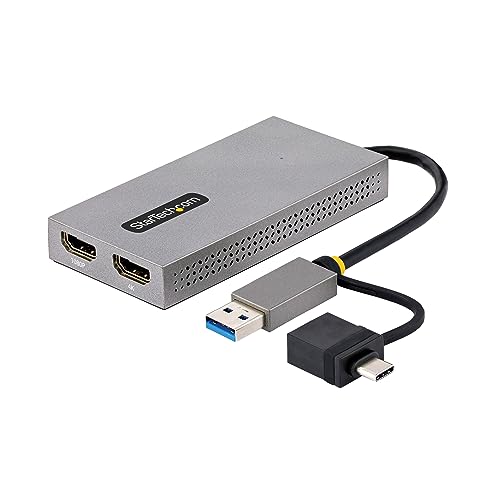 Der StarTech.com Dual Monitor Adapter ermöglicht es, zusätzliche Monitore an Laptops anzuschließen. Die Installation erfordert das Herunterladen und Installieren von Treibern von der Herstellerwebsite.