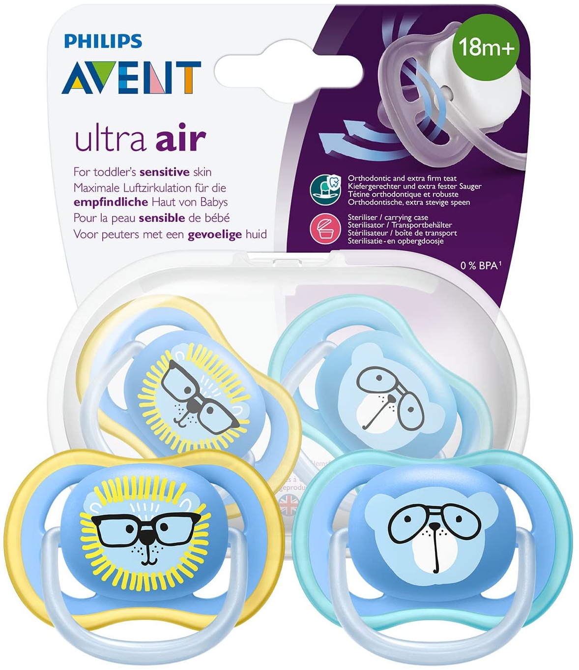 | Name | Philips Avent ultra air Schnuller SCF349/14 , ab 18. Monate, extra fester Sauger, Doppelpac, Löwe/Bär |