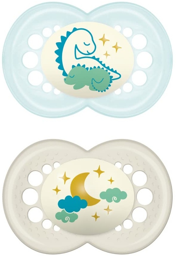 | Name | Mam Original Night Schnuller, 2er-Set, aus Kautschuk, mit Schnullertasche, 6-16 Monate, hellblau und weiß |