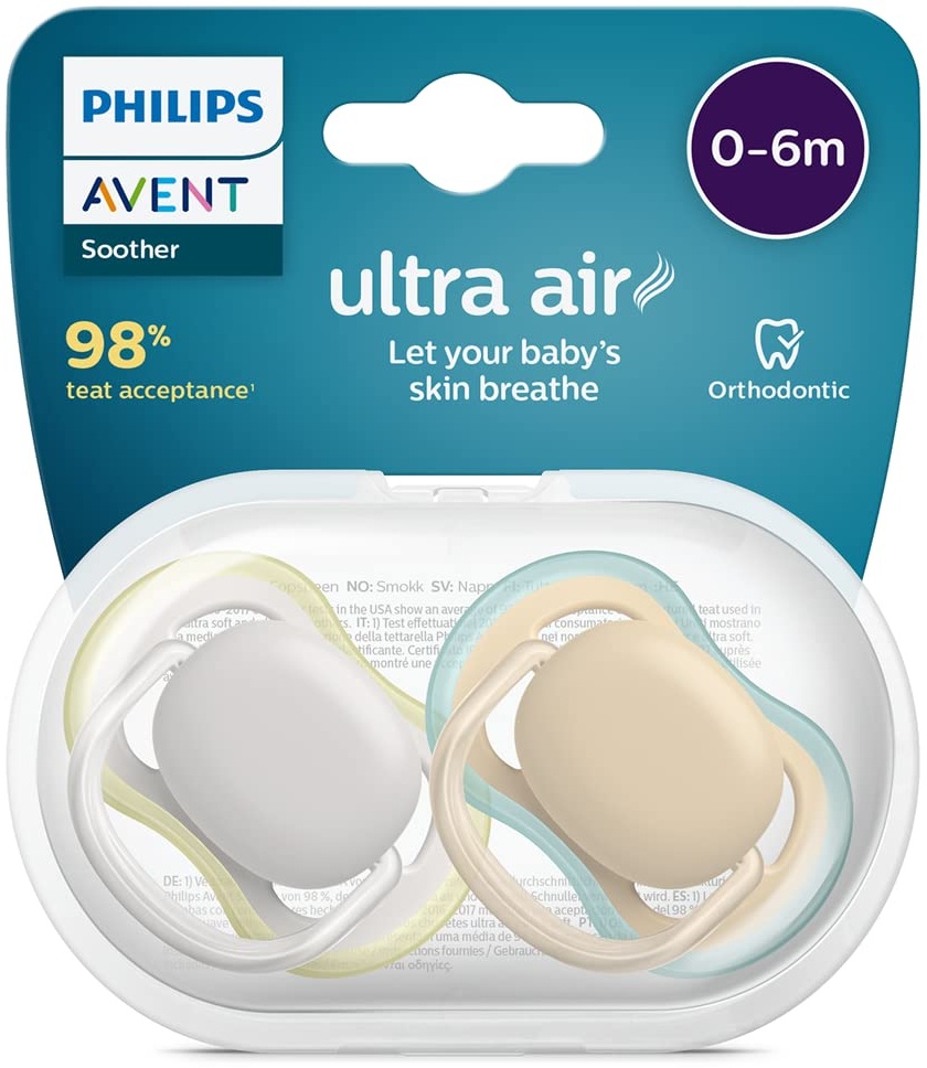 Die Philips Avent Ultra Air Schnuller sind bei vielen Babys beliebt und werden gut akzeptiert. Sie zeichnen sich durch ihre ergonomische Form und das weiche, atmungsaktive Material aus. Einige Eltern haben jedoch angemerkt, dass die Aufschrift auf der Verpackung nicht auf Deutsch ist und dass nicht alle Babys die Schnuller mögen.