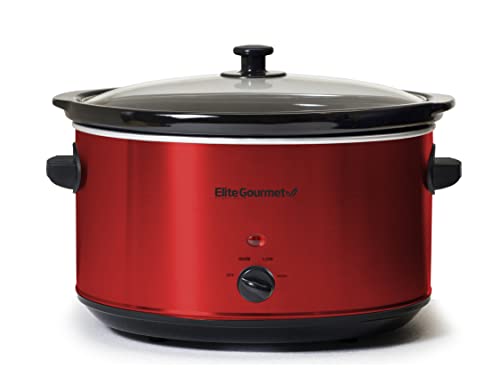 Elite Gourmet MST-900RXT Elektrischer XL-Jumbo-Schongarer aus Keramikeinstellbare Temperatur, Vorspeisen, Saucen, Eintöpfe und Dips, spülmaschinenfester Glasdeckel und Topf, 8,5 Quart, Metallic-Rot